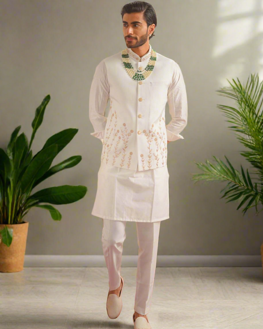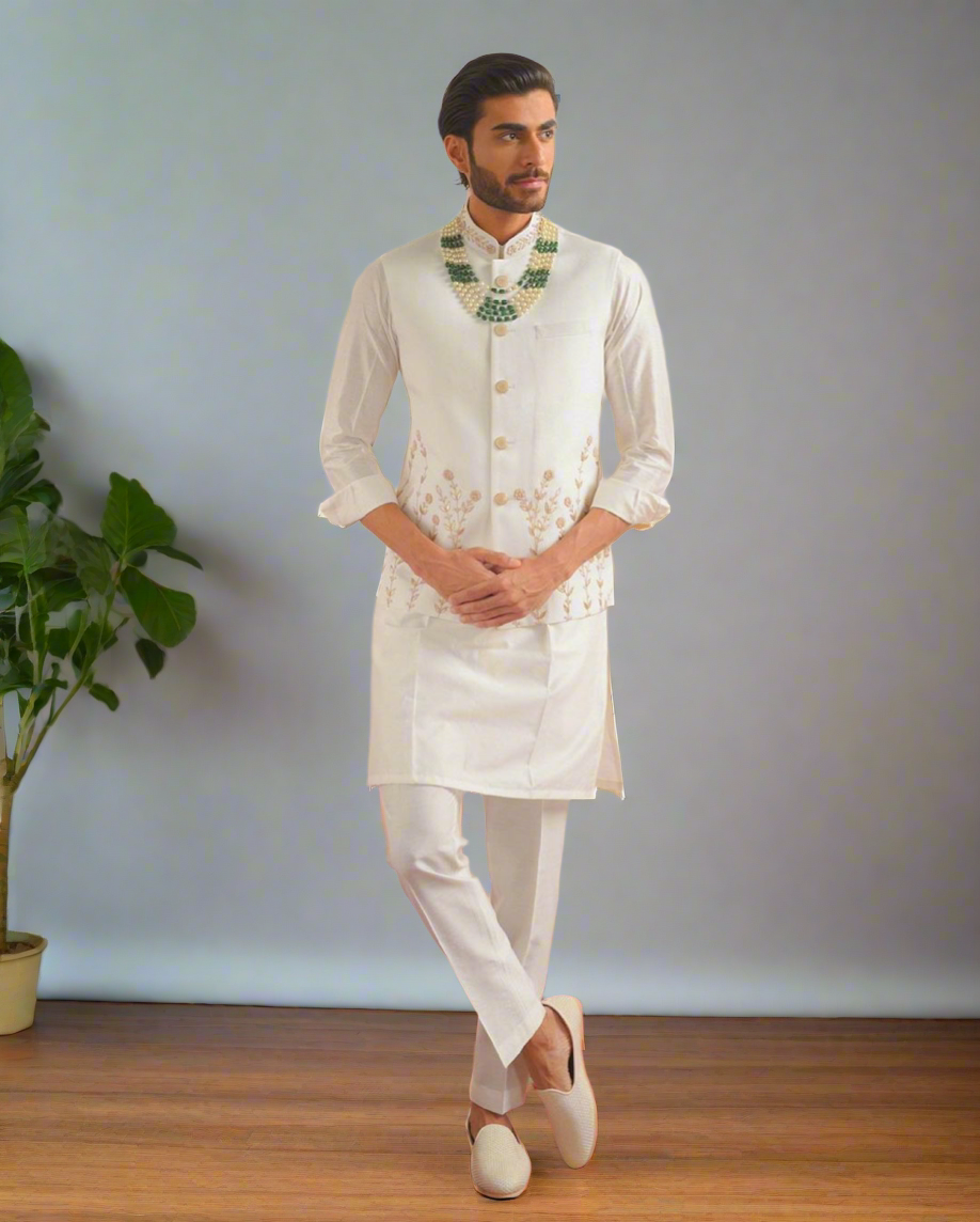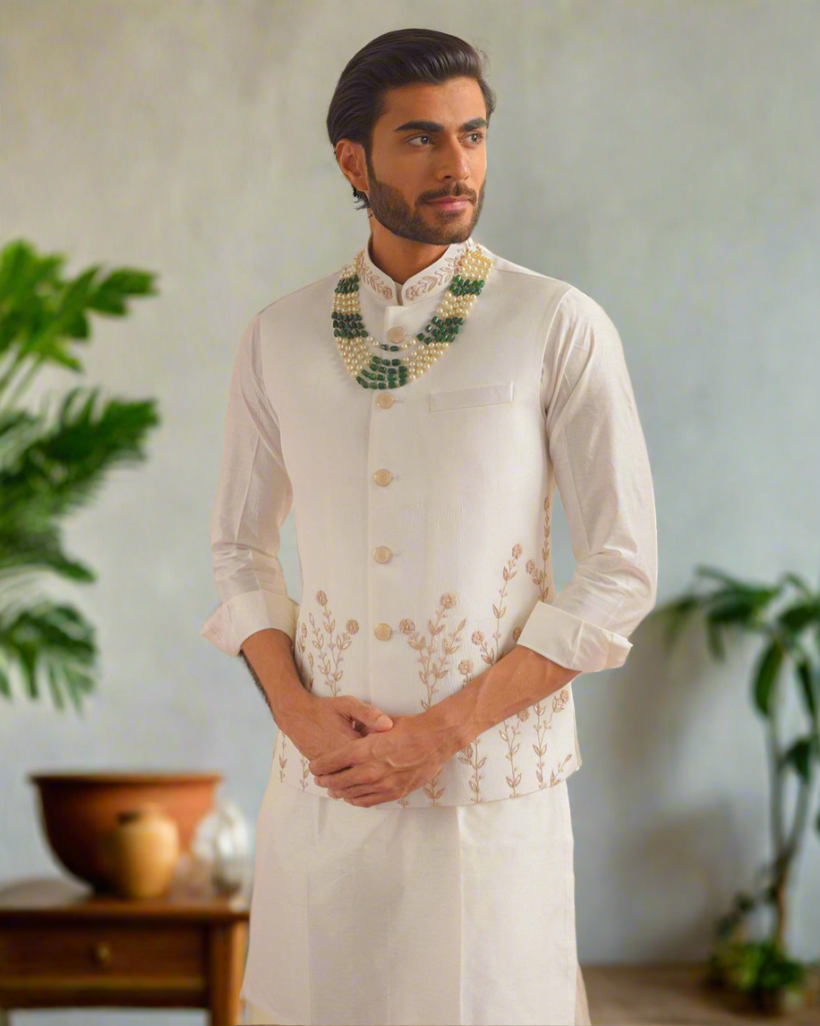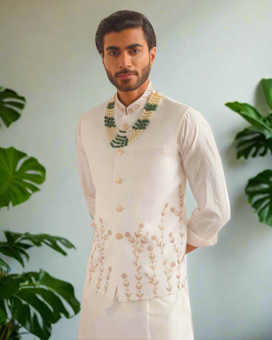 The waistcoat is made from premium fabrics that offer a luxurious feel and are built to last. The intricate detailing, whether it’s in the form of embellishments or the impeccable stitching, makes this waistcoat stand out. Its classic design ensures that it can easily pair with various outfits, from a traditional kurta set to a modern tuxedo.